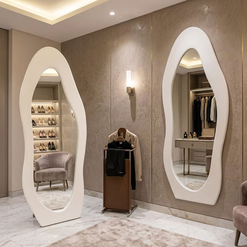 Decorhills Double Wavy Full Length Mirror – Modern Velvet Fabric Wrapped Irregular Standing & Wall-Mounted Mirror