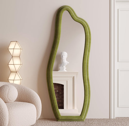 DECORHILLS Irregular Wavy Full Length Mirror – Velvet Fabric Flannel Frame | Standing & Wall Mounted